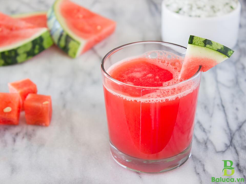 Dưa hấu là loại trái cây quen thuộc của các tín đồ mê trái cây. Dưa hấu ngoài được ăn trực tiếp còn có thể làm nước ép hay sinh tố. Dù là chế biến bằng cách nào thì vẫn đảm bảo thành phần dinh dưỡng có trong dưa hấu. Thành phần chủ yếu trong dưa hấu là nước (chiếm 91%) và carb (chiếm 7,5%). Loại trái cây này hầu như không có protein hoặc chất béo,. Hàm lượng calorie rất ít, 46 calo trong 100g dưa hấu. Mặc dù là loại trái cây có chứa ít calo nhưng nước ép dưa hấu rất giàu vitamin A, C, citrulline và lycopene tốt cho sức khỏe. Uống 1 ly nước ép dưa hấu mỗi ngày sẽ giúp ngăn ngừa ung thư, cải thiện sức khỏe tim mạch, giảm viêm hiệu quả, ngăn ngừa thoái hóa điểm vàng…