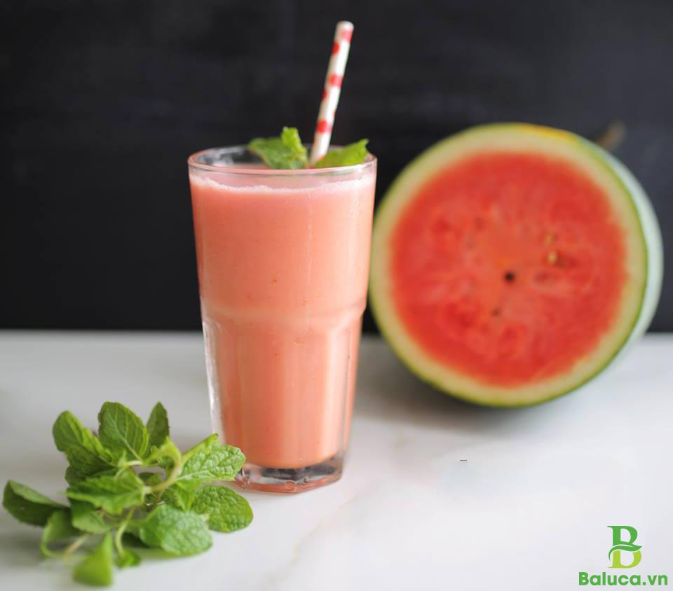 - Sinh tố dưa hấu trở nên hoàn hảo khi đảm bảo cả về hình thức lẫn chất lượng. Để thức uống thêm hấp dẫn và sinh động, bạn có thể trang trí thêm một miếng dưa hấu lên trên hoặc lá bạc hà tùy ý thích nhé.