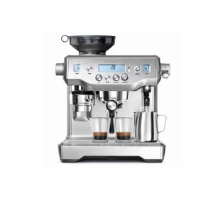Máy pha cafe Breville BES870 đi kèm với máy xay có thể xay hạt cà phê trong một vài giây và đẩy bột cafe qua nồi Espresso để chuẩn bị ly cafe trong vài phút.