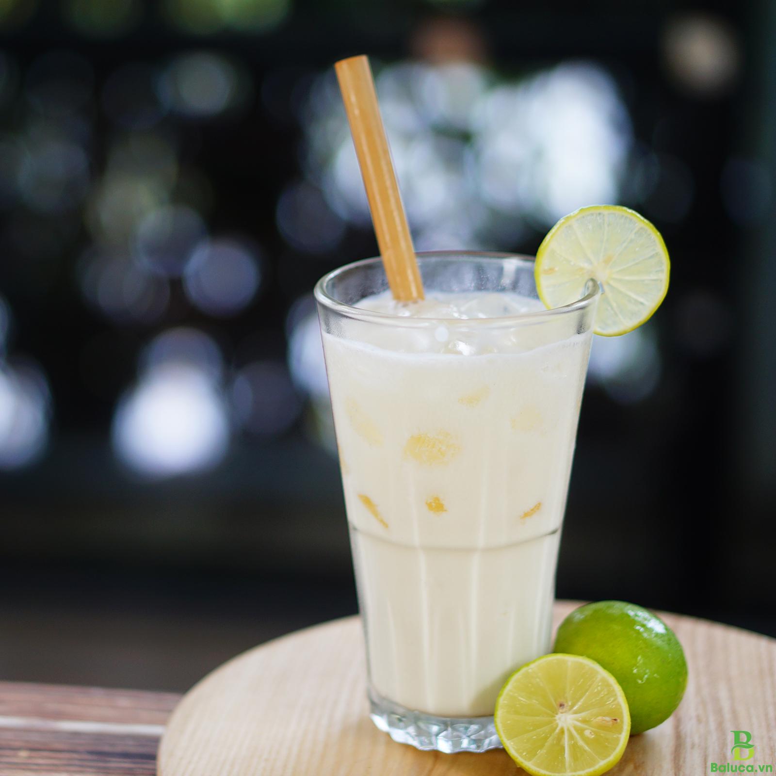 Bạn lắp máy xay sinh tố, sau đó cho lần lượt các nguyên liệu sữa chua, sữa đặc, nước cốt chanh, đường và đá bào vào trong cối. Bật nút xay nhuyễn trong thời gian 30 giây và đến khi thấy đã đạt được hỗn hợp sánh mịn thì tắt máy.